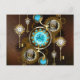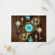 Turquoise lenses with antique watch with brass gears and golden keys on rusty, brown background. Steampunk style.