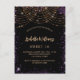 Pour un élégant Sweet 16, 16e anniversaire. Un arrière - plan noir élégant. Décoré avec de la poussière de parties scintillant en faux or violet et des cordes lumineuses dorées. Personnalisez et ajoutez un nom, un âge et des détails de la fête. Le nom est écrit avec un script de style manuscrit