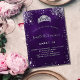 Invitation Carte Postale Sweet 16 parties scintillant violet argent couronn