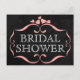 Ajoutez un peu de charme à vos invitations à la douche nuptiale avec ces invitations mignonnes aux cartes postales rose et noir. Cette invitation amusante présente un cadre tourbillonnant rose à la main qui met en évidence un message de Fête des mariées imprimé en gras blanc avec un arrière - plan vintage en tableau noir. Vos informations sur la douche nuptiale sont imprimées au verso de l'invitation en caractères roses et noirs faciles à lire. Vous pouvez facilement customiser l'invitation avec les détails de votre fête, modifier les styles de police et les couleurs. Faites défiler vers le bas pour voir d'autres produits mariages que vous pouvez apprécier.