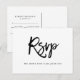 Ces cartes postales RSVP, simples et modernes, offrent une typographie en écriture noire sur un arrière - plan blanc très tendance pour un look très élégant.