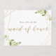 Invitation Carte Postale Verdure et huile d'or Soyez ma femme d'honneur