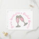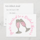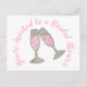 Personnalisez simplement avec vos informations ! La conception de la carte postale comprend une illustration originale au marqueur d'un verre de champagne rose pétillant. Idéal pour une soirée de bachelorette, une douche de mariée, un mariage ou des fiançailles.