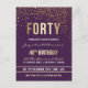 Invitation Carte Postale Violet | Gold Confetti 40e fête d'anniversaire