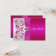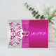Cette carte de réponse RSVP au motif floral rose chaud et gris argenté a un ruban avec une paire de bijoux en diamant imprimés et des cœurs joints à paillettes fausses qui correspondent à l'invitation de mariage présentée ci-dessous. Elle est présentée ici sur du papier de base, mais elle scintillerait encore mieux sur du papier métallisé givré, qui a un éclat opalescent subtil. Le papier feutré est un papier texturé épais et gaufré qui donnerait également des résultats luxueux. Le lin refroidira le design et est un papier léger avec de fines lignes qui le traversent que vous pourriez ne pas aimer. AUSSI, si vous changez les polices ou les tailles de police, votre texte risque de ne plus convenir correctement. Zazzle ne modifiera rien pour les fautes de frappe, l'alignement ou autre chose, et je ne verrai pas votre invitation. Tout sera imprimé tel qu'il apparaît sur votre écran. Si vous avez besoin d'aide pour l'invitation, veuillez me contacter AVANT de la commander. Cette invitation est conçue pour s'adapter à la carte de format 3,5x5. Si vous changez de taille, le design ne conviendra plus correctement, alors si vous souhaitez une taille différente, veuillez me contacter pour que