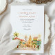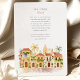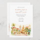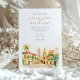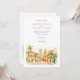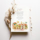 Transportez vos invités dans les rues romantiques de Carthagène, Colombie, avec cette étonnante aquarelle faire-part de mariage. Les oeuvres d'art capturent magnifiquement l'essence de cette ville coloniale historique, mettant en valeur ses bâtiments emblématiques et colorés dans des tons jaunes chauds, orange riche, vibrants en terre cuite, et des touches de bleu turquoise. Des toits de tuiles rouges et oranges couronnent les bâtiments, tandis que de charmantes portes en bois et des balcons ornés de plantes en pots verdoyants et de feuillage à la traîne ajoutent au charme de la scène. Des palmiers verts éminents s'élancent doucement, encadrant la vue, qui comprend des tours d'église caractéristiques avec leurs dômes aux tons chauds, le tout rendu dans un style doux et accueillant aquarelle. Cette invitation est parfaite pour un mariage animé ou pour les couples qui aiment le charme et la chaleur de la culture latino-américaine. L'avant présente élégamment les détails de votre mariage, tandis que l'arrière offre "Les détails les plus fins" pour des informations sur l'invité. La palette de couleurs est un joyeux mélange de jaune chaud, d'oranges, de rouge terre cuite, de différentes nuances de vert verdoyant pour les palmiers et autres feuillages, de blancs crémeux et de tons ciel doux.