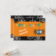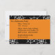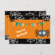 Le devant de l'invitation de la fête d'Halloween pour les enfants présente une mignonne araignée noire suspendue à son web contre un arrière - plan orange vif. Le côté gauche contient un texte blanc qui dit "Vous êtes invité !" et peut être customisé. Une bannière "Trick or Treat" est portée par deux chauves-souris noires. Une bordure en toile d'araignée noire et blanche ajoute un intérêt éffrayant. Le verso de la carte comporte trois champs distincts pour vos informations personnalisées. Mignonne, et non effrayant pour les enfants. *L'image clipart utilisée dans cette conception est protégée par le droit d'auteur de Encore Software, Inc., qui permet son utilisation à ses concédants de licence. Tous droits réservés.