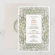 Cette invitation de mariage champêtre à thème marguerite présente le style Art nouveau emblématique d'Alphonse Mucha. Le design s'inspire des lignes élégantes et des courbes fluides de l'Art nouveau, avec une touche de glamour Art déco. L'invitation présente des détails floraux complexes. Le texte est imprimé dans une police élégante, parfait pour toute célébration de mariage champêtre élégante.