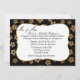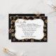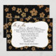 Invitation de réception de mariage chic parfaite pour le couple qui s'enfuit ou se marie à l'étranger. Le fond de l'invitation est noir, avec des graphiques de fleurs scintillantes dorées. Une zone de texte blanc décorative avec un bord doré, au milieu, comporte un texte graphique doré, en haut, indiquant M. et Mme. Personnalisez le texte noir selon vos besoins.