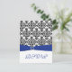 Invitation Carton de réponse en damassé bleu royal, blanc et