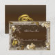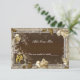 Fond marron rustique avec des roses blanches et des alliances dorées. Faites savoir à vos invités où ils sont censés s'asseoir avec cette jolie carte de table. Personnalisez la carte en modifiant le texte dans les champs prévus à l'avant et à l'arrière. Vous pouvez changer le style de police, la taille, la couleur, ainsi que le type et le style de papier.