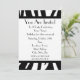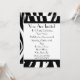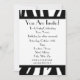Un carton d'invitation simple avec un motif à rayures de zèbre en haut et en bas de la face avant. Garniture noire et police Parisienne noire. Personnalisez avec les détails de votre occasion. Le verso présente un design uni avec une forme de cercle au milieu, encadrant le texte.