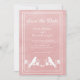 Invitation de mariage élégante et simple avec une paire d'inséparables posés sur une branche fleurie sur fond rose. Un design unique pour annoncer un mariage moderne. Personnalisez facilement avec vos informations de mariage. Cliquez sur "Personnaliser" pour découvrir davantage d'options.