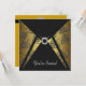 Cartons d'invitation de soirée et d'événement avec motif damas noir sur fond or avec une garniture noire et diamantée. Ce modèle de conception convient bien comme invitation à une fête d'anniversaire, une soirée cocktail, une fête de fin d'année, un événement d'entreprise, un gala, une fête de retraite, une soirée du Nouvel An et toute autre occasion spéciale. Personnalisez avec votre choix de style de police et de couleur de police, ainsi que de couleur de fond.