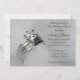 Invitez vos invités à célébrer les jeunes mariés le matin après leur mariage avec le joli carton d'invitation au brunch de mariage. Cette élégante invitation personnalisée pour le petit-déjeuner ou le déjeuner après le mariage présente une photographie d'une bague de fiançailles en diamant et d'un anneau de mariage sur un fond gris clair.