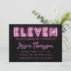 Invitation Carton d'invitation d'anniversaire 11 ans Rose Néo