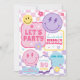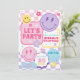 Invitation aux visages souriants pastel amusants ! Un thème tendance rétro amusant, avec des nuances roses, un bleu pastel, du violet, du jaune, des fleurs, un éclair, des étoiles et un motif à carreaux.