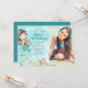 Douce invitation d'anniversaire de sirène sous la mer. Retournez notre invitation pour voir un fond bleu coordonné pour un effet spécial supplémentaire.