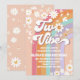Célébrez avec style grâce à cette invitation d'anniversaire rétro arc-en-ciel qui présente des couleurs pastel ludiques, des marguerites souriantes, des signes de paix et des motifs inspirés des années 70. Parfait pour les fêtes d'enfants, ce design vibrant mélange la nostalgie avec un charme moderne pour créer un souvenir que les invités adoreront. Personnalisez avec le nom de votre enfant, les détails de la fête et rendez leur journée spéciale inoubliable. Idéal pour les deuxièmes anniversaires, les baby showers ou toute célébration remplie de plaisir avec une ambiance hippie.