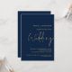 Carton d'invitation de mariage à code QR élégant avec typographie dorée sur fond bleu marine. Ajoutez votre code QR vers votre site web de mariage au verso, cela offre à vos invités une option pratique pour répondre et voir tous les détails sans avoir besoin de cartes de RSVP et de détails séparées. Style typographique minimaliste, avec une écriture manuscrite pour « Mariage » et le reste du texte que vous pouvez facilement personnaliser.