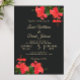 Carton d'invitation de mariage avec fleur d'hibiscus lumineuse sur fond noir