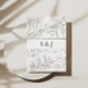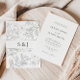 Annoncez votre jour spécial avec cette invitation de mariage florale noire minimaliste, mettant en vedette une illustration botanique élégante et une mise en page moderne et épurée. Conçue pour les couples qui aiment la sophistication intemporelle, cette invitation de mariage recto-verso comprend une conception avant raffinée et un verso élégant avec les initiales personnalisées du couple pour une touche personnelle. Parfaite pour les thèmes de mariage noir et blanc, les célébrations modernes et les collections de papeterie florale classique. Entièrement personnalisable avec les noms, la date, le lieu et le texte pour créer un ensemble d'invitations cohérent et soigné.