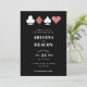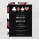 Une invitation de mariage pour le couple moderne, cette invitation présente une typographie propre et simple avec une sensation moderne et un graphique sur le thème du casino scintillant de paillettes roses et d'enseignes de cartes blanches faisant de ceci le choix parfait pour une affaire somptueuse à Las Vegas.
