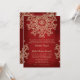Une belle invitation de mariage de couleur rouge rubis profond et doré avec un motif de médaillon de sari ornemental exotique inspiré de l'Inde avec un design floral et de lotus. Cette invitation de mariage élégante et belle de style indien moderne est parfaite pour une fête de fiançailles ou une fête d'anniversaire avec un thème indien, marocain, est-asiatique ou indonésien. Conçu par Chrissy H. Studios, LLC. Tous droits réservés.