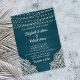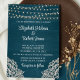 Ajoutez une touche de charme bohème à vos invitations de mariage avec cette invitation de mariage élégante et rustique Dark Teal Rustic Elegance. Le fond en bois de couleur sarcelle foncée prépare le terrain pour une célébration magique, ornée de guirlandes lumineuses qui créent une atmosphère romantique. Des motifs délicats de dentelle florale blanche encadrent les coins de l'invitation, ajoutant une touche élégante et féminine. La combinaison d'une police de caractères script vintage et d'une police serif lisible en blanc crée un beau contraste sur le fond sombre, garantissant que tous les détails sont facilement lisibles. Cette invitation est parfaite pour les couples qui recherchent un thème de mariage unique et enchanteur. Définissez le ton de votre journée spéciale avec nos invitations de mariage Rustic Elegance qui laisseront une impression durable sur vos invités.