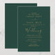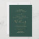 Cette élégante invitation de mariage présente une délicate calligraphie dorée associée à des tons verts riches, idéale pour des mariages intemporels, formels ou inspirés de la nature. Un mélange sophistiqué d'élégance et de charme terreux. Entièrement personnalisable pour correspondre à votre thème de mariage.