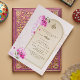 Invitation de mariage Nikkah de luxe avec Bismillah sacré, hydrangeas romantiques à l'aquarelle et éclat rose d'hibiscus