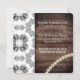 Une belle invitation de réception de mariage. Une clôture en bois rustique et un motif floral ancien gris et blanc avec des perles. Sur le devant figure le message "Nourriture, Boissons & Mauvais Mouvements de Danse". Ajoutez le nom des mariés. Personnalisation au verso, ligne par ligne.