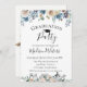 Élégante composition florale à l'aquarelle dans les tons bleu poussiéreux et neutres pour un carton d'invitation de remise de diplôme. Personnalisez la police, la couleur et la taille du texte.