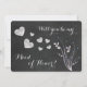 C'est une carte d'invitation de témoin de mariage amusante, mais élégante, qui présente un motif floral fantaisiste avec un embellissement floral bleu qui ressemble à de minuscules perles. Des cœurs en tableau noir argenté flottent au milieu, avec votre texte personnalisé en haut et en bas. Le dos a le même fond de tableau noir avec votre texte personnalisé restant. Il existe un modèle assorti pour les demoiselles d'honneur dans notre boutique. *Les illustrations utilisées dans ce design sont la propriété d'Encore Software, Inc., qui autorise l'utilisation à ses concédants. Tous droits réservés.