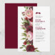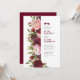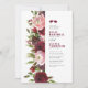 Élégantes invitations de double remise de diplômes avec des florales aquarelles rustiques bordeaux et rose, et un modèle de texte moderne facile à personnaliser.