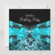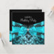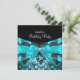 Carton d'invitation pour anniversaire. Dentelle noire élégante et nœud sarcelle avec diamant. Veuillez noter : Toutes les images sont plates !