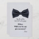 Une carte de demande d'un garçon d'honneur formelle et élégante pour demander à vos amis de faire partie de votre cortège nuptial. (<a href='https://www.freepik.com/free-vector/black-bow-tie-realistic-icon-isolated-on-white-background_3685451.htm'>Conçue par Vectorpouch</a>).<br/><br/>La carte est facile à personnaliser avec votre libellé, police, couleur de police et choix de types de papier.<br/><br/>Pas exactement ce que vous cherchez ? Tous nos produits peuvent être conçus sur mesure pour répondre à vos besoins sans frais supplémentaires.<br/><br/>Contactez-nous simplement à heartfelthelper@gmail.com<br/><br/>Produits de coordination disponibles :
