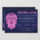 Crâne de sucre néon rose sur fond de brique sombre - cette invitation est l'une de nos préférées pour une soirée enterrement de vie de garçon/fille, un anniversaire, une fête d'Halloween, ou même un mariage à thème ! Vous pouvez personnaliser l'invitation avec vos propres détails d'événement !