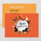 Invitation à une fête d'Halloween, symboles de fête d'Halloween. Invitations et annonce - Carte. Citrouille d'Halloween, chapeau de sorcière magique, chauve-souris, chat noir, araignée, toile, maison, lune, symboles d'Halloween, illustration, dessin. Éléments d'illustration de nuit magique d'Halloween avec option de modification de texte personnalisé. Personnalisé avec modèle pour le texte. Anniversaire, événement de vacances, pour garçon, pour fille, pour mère, pour père, pour bébé, pour enfants, pour homme, pour femme, famille, école, idée de cadeaux pour amis