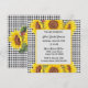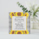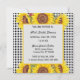 Créez l'invitation parfaite pour votre occasion spéciale avec cette Invitation Personnalisable présentant un motif classique à carreaux noirs et trois tournesols jaunes vibrants. Personnalisez l'invitation pour n'importe quel événement, qu'il s'agisse d'une fête de mariage, d'une baby shower, d'une fête d'anniversaire ou d'une autre occasion pour les dames. Vous pouvez facilement ajouter vos détails et la personnaliser pour qu'elle corresponde au style de votre fête. Disponible en téléchargement si vous préférez une version numérique !