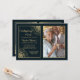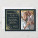 Une invitation noire élégante avec deux encadrements dorés. Un encadrement décoratif contient les informations de votre fête et l'autre votre photo préférée. Parfait pour toute célébration joyeuse.