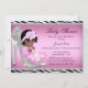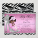 Carton d'invitation pour Baby Shower rose. Jolies chaussures à talons argentées scintillantes avec une adorable petite fille afro-américaine. Veuillez noter que toutes les images sont plates.