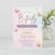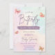 Carton d'invitation pour une baby shower avec un petit papillon en route.