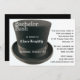 Invitation stylée pour enterrement de vie de garçon en noir et blanc avec une photographie d'un chapeau haut de forme à l'ancienne sur fond blanc. Le texte en blanc et noir est entièrement personnalisable et prêt à être personnalisé pour votre soirée entre garçons.