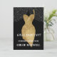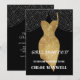 Cette élégante invitation à une soirée de bachelorette présente une image de robe de cocktail dorée scintillante sur un fond noir dramatique. Derrière la robe pend un rideau de guirlandes lumineuses. Votre texte personnalisé est en blanc près du bas de la face avant. Le verso de l'invitation est également noir, avec une répétition du rideau de guirlandes lumineuses, et beaucoup de place pour votre texte personnalisé. Dynamique pour une soirée entre filles de plaisir et de célébration !