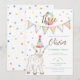 Appel à tous les animaux de fête ! Cette charmante invitation pour les trois ans présente un bébé chèvre avec un chapeau de fête arc-en-ciel, des fanions aquarelles colorés et des confettis festifs. Un choix charmant pour les célébrations sur le thème de la ferme ou les tout-petits qui aiment les animaux. Personnalisez avec le nom de votre enfant et les détails de la fête pour une invitation amusante et mémorable.