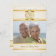 Cartons d'invitation personnalisés élégants pour une fête d'anniversaire de 50 ans -- Accents dorés vintage décoratifs sur fond ivoire avec cadre photo et monogramme antique classique. Ajoutez votre propre photo et personnalisez le nom, la date et les détails pour votre célébration d'anniversaire de mariage spéciale. Enveloppes assorties, timbres et cartes de remerciement disponibles. **REMARQUE : Format pour les cartes d'invitation PETIT 4,25 x 5,5. D'autres tailles et styles sont disponibles dans la galerie.