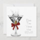 Modèle d'invitation à une fête martini élégant et croquant avec un nœud rouge. Ajoutez vos détails à l'avant et/ou à l'arrière en choisissant simplement le bouton "Personnalisez-le !" pour commencer à ajouter les détails de votre événement, le style de police, la taille et la couleur de la police, ainsi que le libellé. Veuillez noter que tous les modèles d'invitation que vous trouverez sur Zazzle sont des graphiques imprimés sur du papier plat sans véritables bijoux, nœuds, reliefs, gaufrures ou pièces ajoutées.