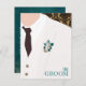 Ajoutez du style à la soirée d'enterrement de vie de garçon de votre meilleur ami avec des invitations habillées en smoking de Kustom By Kris. Le devant indique "Le Marié" et présente un homme en smoking devant un papier peint en brocart. Personnalisez le dos de couleur sarcelle foncé avec les détails de la soirée d'enterrement de vie de garçon.