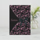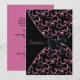 Fond noir avec des tourbillons roses et un overlay noir avec un ruban en satin noir, modèle de carton d'invitation personnalisé pour anniversaire ou événement. Ce modèle de design fonctionne bien comme invitation pour un anniversaire, une soirée cocktail, une fête de vacances, une fête de retraite et toute autre occasion spéciale. Personnalisez avec votre choix de style de police et de couleur de police, et de couleur de fond.